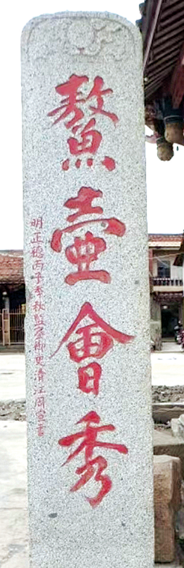 洋尾村白塘科第坊旁原立一通明代周宣书“鳌壶会秀”碣,高232厘米,宽54厘米。落款“明正德丙子年(正德十一年,1516)秋,监察御史清江周宣书”。
