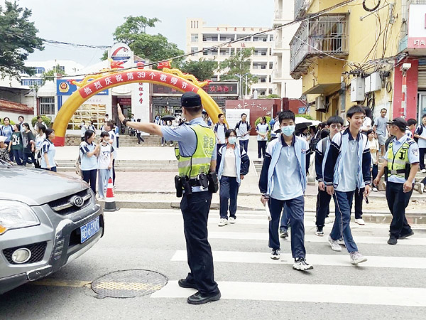 本报讯 9月7日,全市中小学、幼儿园正式开学上课。湄洲派出所结合夏季治安打击整治行动,从严落实全岛12个校区校园安全防范工作,通过排查整改安全隐患、整治校园周边交通秩序、加强开学护校等工作,确保校园安全形势持续稳定,维护校园周边良好治安环境,保障开学工作有序开展。