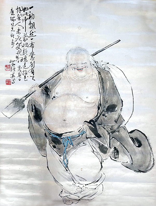 张英以独辟蹊径的勇气进行艺术创作,特别是他的晚年,作品笔调闲逸,色彩清新儒雅,富有浓情逸致的风骨。新加坡作家协会主席周颖南曾收藏了不少张英的佳作,他赞赏张英的画法上承瘿瓢(黄慎,字瘿瓢),在李耕的基础上贵有己意,不落前人窠臼。张英的《弥勒佛图》,其弥勒形象酷似张英晚年的形象,一副心宽体胖、笑容可掬的举止,令人一见心生欢喜。张英用折芦描的笔法,寥寥几笔,就把弥勒形象栩栩如生地勾勒出来,给人以欢快愉悦之感。福建师范大学俞元桂教授不仅有幸得到一幅李耕的《弥勒佛图》,还得到了一幅张英的《弥勒佛图》,两相比较,俞元桂大加赞誉,说:“张英所画,形象直追恩师李耕,笔墨简练、线条轻快,弥勒笑容可掬,微带调侃神态,又有出世情怀。”林懋义也高兴地说他得到了一幅张英的逸笔《达摩图》,该作画于1981年秋,其时,张英正准备赴港展览,先在福州于山福州画院预展。预展前一天晚饭后,万事皆谐,张英心情轻松,便利用一张余纸,应林懋义之邀一挥而就。这幅画和题款,信笔随心,为无意中之佳作。这幅画不仅令林懋义十分满意,而且海派画家黄昌中也认为是张英古典人物画中最好的作品之一。