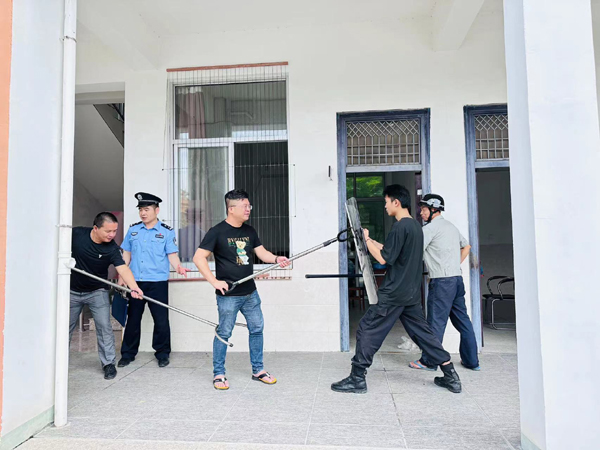 演练开始前,派出所民警为学校老师及安保人员详细讲解反恐防暴知识并现场演示防暴盾牌、防暴钢叉、抓捕器以及长棍的使用方法。演练以校园范围内突发性暴力袭击为模拟场景,“歹徒”强行闯入学校,安保人员立即报警并使用防暴器械喝令“歹徒”停止违法行为,劝其远离学校,几分钟后民警到达现场,经过大家的协同作战,成功将“歹徒”制服。整个演练过程组织有序,大家配合默契,达到了演练的预期目的。