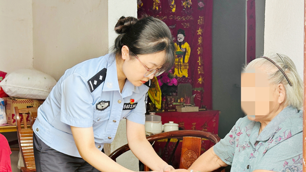 9月7日上午,黄石派出所接到辖区居民求助称:家中有行动不便老人没有身份证,给办理社保、养老以及日常就医等带来了极大不便,请求民警帮助。获悉情况后,当天中午,户籍民警利用午休时间,携带照相机、指纹采集仪等相关设备前往老人家中,为其进行照片采集和指纹信息采集,核实比对身份信息,成功为老人办理了身份证申领业务。临别时,老人及其家人对民警热情周到的服务再三表示感谢,对民警心系群众、服务为民、上门办证暖心举措点赞。(蔡琦琳)