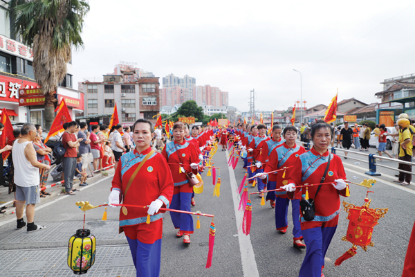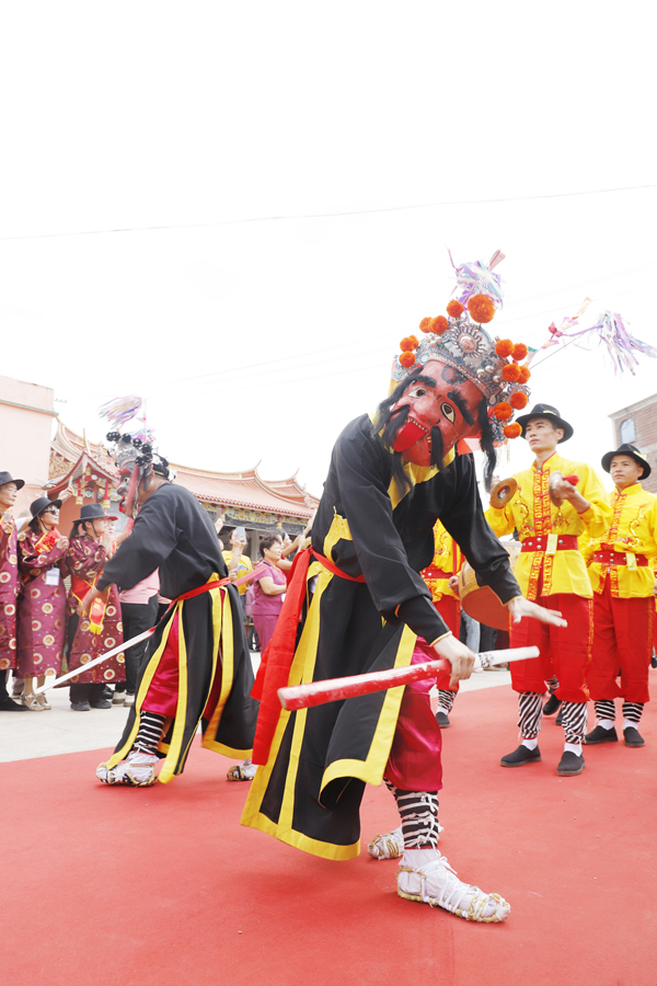 巡安期间,高温天气犹如沿途群众一样热情高涨。参与巡安护驾的队伍中,无论是来自台湾大甲镇澜宫哨角队的80岁高龄队员,还是潮汕英歌队年仅6岁的“小时迁”扮演者,大家都顶高温、冒酷暑,一路紧随妈祖金身巡安的步伐,始终以饱满的热情,倾情表演。