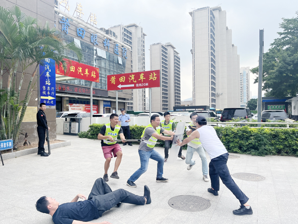 本报讯 为有效防范突发伤害事件,切实加强重点区域安保工作,提高安全管理水平和突发事件应急处置能力,维护辖区安全稳定。9月13日下午,镇海派出所联合巡特警反恐大队在莆田市汽车站开展应急处突演练。