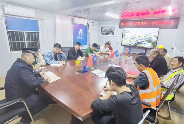 本报讯 为深入学习习近平新时代中国特色社会主义思想主题教育宣传,进一步助推主题教育精神在警营内外落地生根,助力辖区企业高质量发展,11月9日晚,南日派出所宣讲小分队深入海洋项目工地,开展主题教育精神“云”宣讲活动。