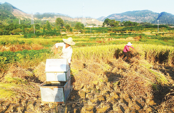 本报讯 连日来,在仙游县的赖店、龙华、榜头、鲤南、鲤城、大济、度尾等平原乡镇大片稻田里,到处是收割机、打谷机在忙碌地收割着,农民们不误农时季节,一边收割晚稻一边抓紧翻耕下种。稻田里,收割机轰响,打谷声阵阵,运载稻谷的车辆繁忙地奔跑在机耕道上,到处是人来人往,呈现出一派农家丰收的热闹景象。