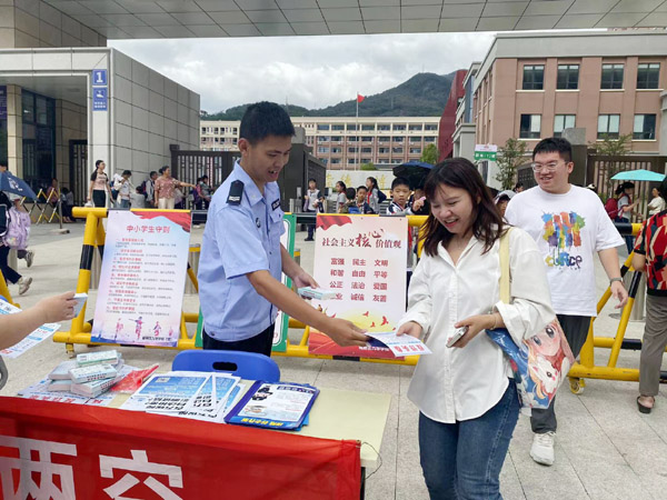 在站好“护学岗”的同时,网格员充分利用空档时间,向广大教职工、学生、家长分发道路交通安全、反诈、禁毒等宣传材料,将普法宣传的工作铺设到校园中。对典型案例分析、讲解、教育引导群众增强保护意思、安全意思和法律意思,大大加深了群众对违法犯罪的认知,使人人知敬畏、明底线。推动安全防范“有力、有为、有效”。(林仪)