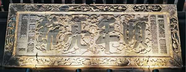 状元王仁堪题匾中间行楷书“颐年亮节”四大字,上款“赐进士出身、丁丑科状元、钦点翰林院修撰、钦命四川督学部院、年家愚侄王仁堪顿首拜贺”,下款“旌表节孝、诰封恭人、贞修陈太恭人颐龄荣庆,光绪岁舍旃蒙作噩菊秋穀旦立”。