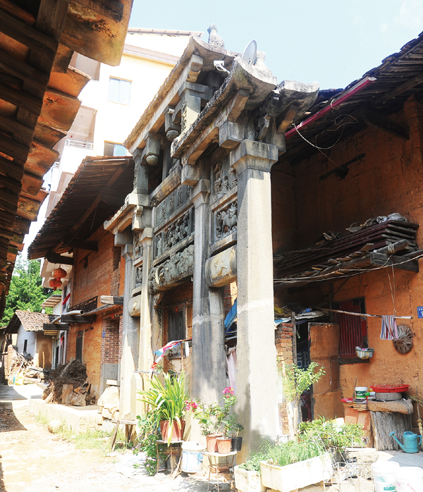 仙游大济的龙坂石坊,有200多年历史,是村内仅存的一座石坊。据了解,石坊建于清雍正年间,仿木阁楼式,四柱三间二楼,柱间距6.1米,通高9.2米。第一层阁中竖刻楷书“恩荣”,左右浮雕龙纹装饰,中间字牌横刻楷书“德比卢曹”。历经200多年,雕刻仍栩栩如生。 (陈国松)