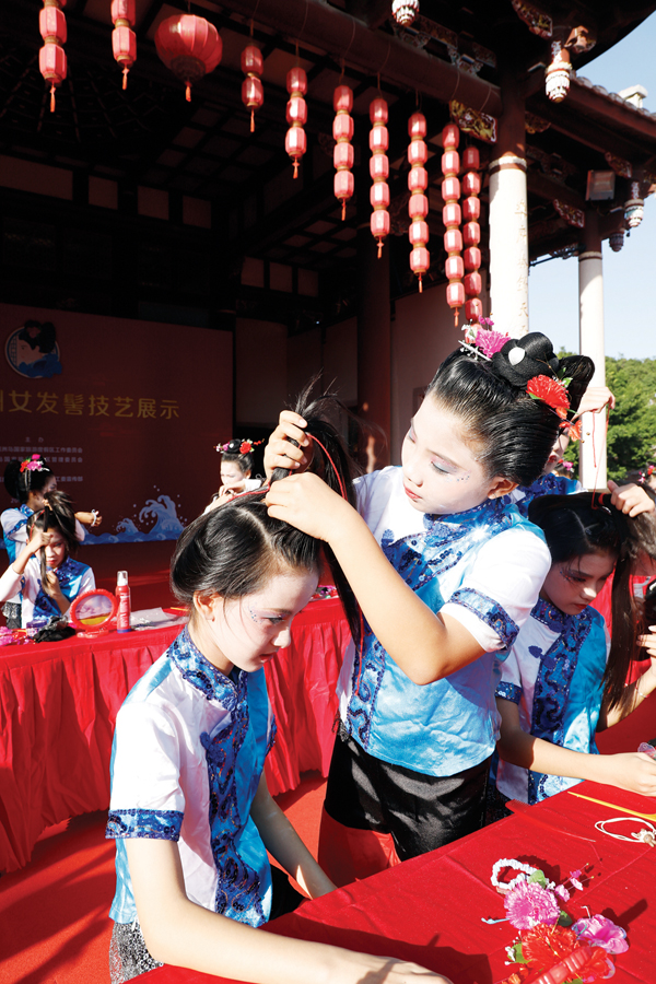 为进一步推动妈祖信俗非物质文化遗产项目的保护工作,充分展现“湄洲女发髻”独特魅力,鼓励更多的年轻人学习此项技艺,培养更年轻的“湄洲女发髻”技艺传承人,11月17日下午,由湄洲岛国家旅游度假区管委会主办,湄洲岛党工委宣传部承办的第八届湄洲女发髻技艺展示在湄洲妈祖祖庙圣旨门广场举行。