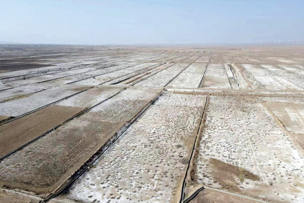 图为今年3月宁夏回族自治区同心县韦州镇甘沟村试验区盐碱地样貌。