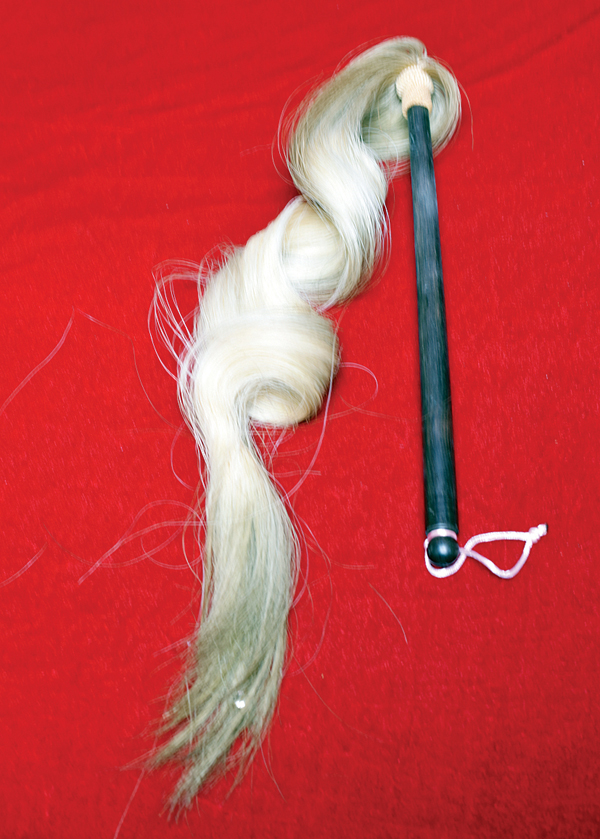 妈祖拂尘:拂尘在道门中有拂去尘缘超凡脱俗之意,拂尘是妈祖宫庙祭祀活动中的一种法器。人们熟知的太上老君、太乙真人、吕洞宾,皆以拂尘壮其神威,仙风道骨油然而生。自古也有“手拿拂尘不同凡人”的说法。在《妈祖圣迹图》中,可看到妈祖使用拂尘,施展法力,救苦救难。正是它的文化魅力,人们特别青睐它,又特别向往、崇拜它。文峰宫内存拂尘一把。