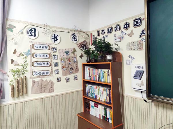 活动中,师生一起动手,全力美化自己的教室。教室整体布置整洁而优雅,特色文化精彩纷呈。“卫生角”、“图书角”、“植物角”、“中队角”、“主题板报”等栏目诠释着成长、自信、快乐。独具匠心的班级布置给予了每个同学展示自己风采的平台和机会,也充分展示了老师们的智慧、审美情趣和艺术才华,浸透出平等、宽容、激励、催人奋进的班级文化,创造出了各自不同的班级文化特色和学习文化氛围。