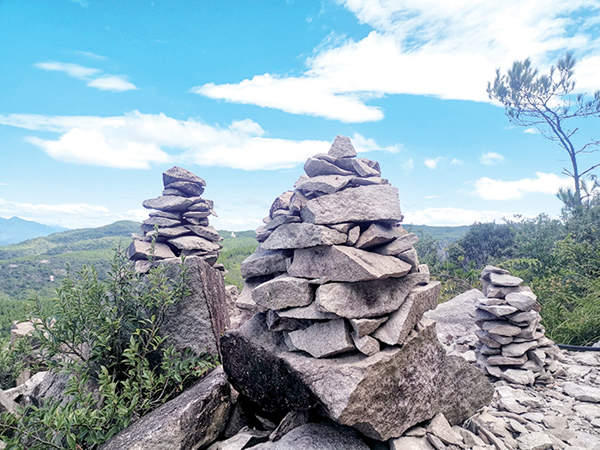 老人家每天都从山脚下徒步上山,他说要爬好几个小时。再爬上一段登山石阶,就到达塔山寺和寺后的望夫塔。