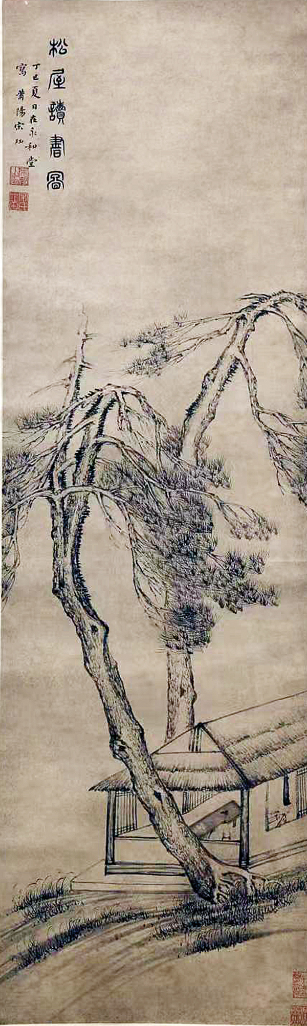 宋珏 《墨笔松屋读书图》
