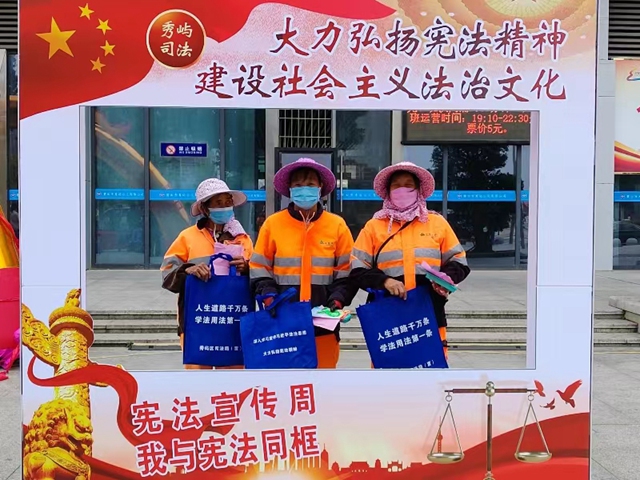 12月1日,秀屿区司法局联合笏石镇等多家单位,在莆田火车站广场开展“12·4”国家宪法日宣传活动。围绕与群众生活息息相关的法律知识开展趣味答题活动,为群众发放各类法治宣传资料和法治宣传产品500余份,接受群众咨询200余次,掀起一阵学法的热潮。