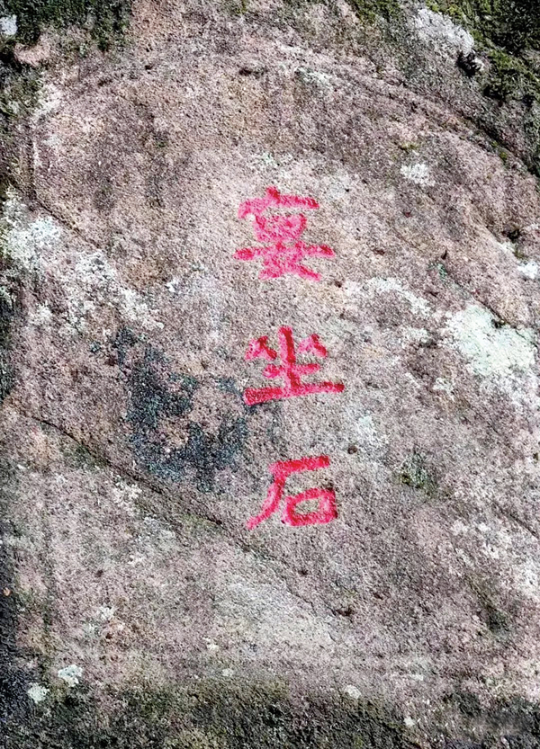 龙潭洞口左边巨石上刻楷书“宴坐石”三字