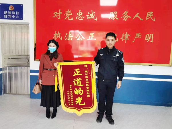 本报讯 “真的是太感谢你们了,这么快就为我找到被盗的手机”2023年12月18日上午,市民肖女士将一面锦旗“正道的光”送到鲤城派出所民警手中由衷的感谢民警心系群众,破案神速,仅用13小时就帮助肖女士找回被盗的手机。并且对于民警急群众之所急,想群众之所想,为老百姓办实事的工作作风予以充分肯定。