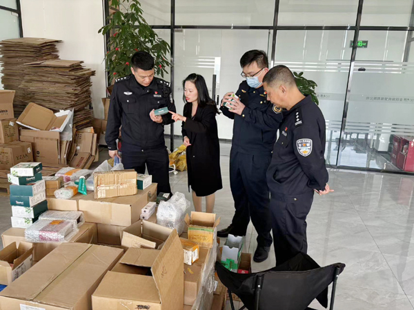 期间,民警认真对各写字楼进行扫楼,逐层逐家逐户清查电商公司,重点检查其所销售产品的注册商标、销售资质、产品来源及销售渠道,询问负责人相关经营情况,引导负责人要恪守诚信原则,确保合规经营,严禁非法销售、制造假冒伪劣产品。同时,加大普法宣传,号召主播、职工以及周边群众要增强法律意识,坚决抵制制假售假,严禁触碰法律底线,一旦发现异常情况要第一时间向公安机关举报。民警还向周边群众宣讲防诈知识,提高防诈意识,收到了专项行动与防诈宣传双管齐下的良好成效。