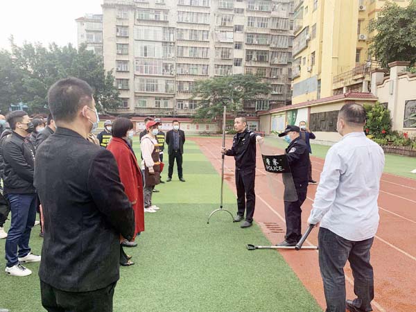该校依托校园专班组,联合学校、派出所、教育局、街道社区创建“群防群治护学联动机制”,与校园周边商住户制定“租赁护学责任书”,签订“全民护学岗承诺书”,授予“全民护学岗证书”,登记各个护学岗编码与人员信息,把所有商住户建成校园的“安保室”;此外,在原由校聘社区联防队、交警护学岗、派出所巡逻队、保安、导护师组织成上放学重点时段护学岗机制的基础,发动周边商住户、学生家长加入护学志愿者队伍。组织公安专业人员定期对学校保安、教师、护学志愿者、接送家长进行防爆防恐培训与应急演练,提高安保技能和突发事件处置能力;该校结合校情实际,在校园周边商住户配置10套全民护学岗安防装备,涵盖应急警棍、防爆盾牌、便携钢叉等,设置多个专用监控探头,与校内“一键报警”相呼应,第一时间监控、汇报、处置突发事件,形成了人防、物防、技防并举的“群防群治、全民护学”格局。