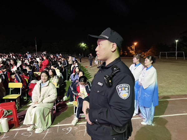 本报讯 元旦前夕,仙游县盖尾中学举行2024年元旦联欢晚会暨社团才艺汇演,为确保元旦校园联欢晚会顺利举行,盖尾派出所民警主动措施,积极做好该校联欢会安保工作,为演出保驾护航。