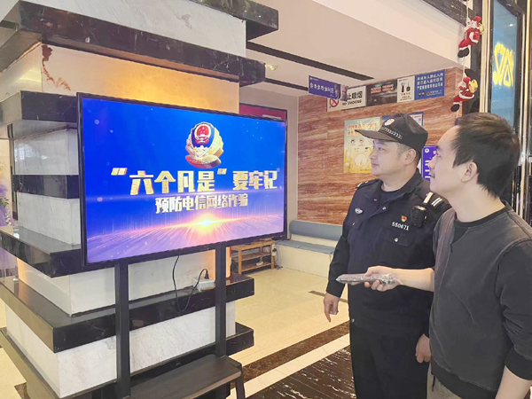 “线”上延伸。民警通过“线上+线下”全方位渗透式开展反诈宣传。线上依托社区群、网格群等不断推送防范电信诈骗案例、反诈小常识以及所里自制反诈日报。线下发动辖区社区网格员、物业保安等通过“民警+辅警+群防群治力量”组成移动反诈宣传小组,在群众聚集地摆摊设点、在人流较多的天博广场、奶茶店等沿街商铺以案释法讲解电信网络诈骗团伙的常用套路和作案特征等,引导群众安装国家反诈app,确保安装一个、宣传一个、保护一个,努力消除宣传盲区和防范漏洞。同时,利用社区小喇叭、LED屏幕、宣传车等方式进行滚动播放宣传反诈信息、“一站式”综合服务便民措施等,全面加强辖区反诈宣传,喊出反诈“最强音”。(陈爰爰)