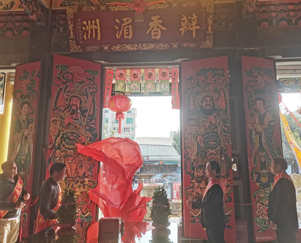 庄美华向各宫庙的代表送去了祖庙董事会的新年祝福和新年挂历,重点介绍了湄洲妈祖祖庙一年来的主要活动和工作情况,也诚挚地邀请各宫庙常回家看看。此外,联谊团队还参与了漳州台商投资区五恩宫和龙海区和凤宫的“瓣香湄洲”揭匾仪式,见证两宫和祖庙友谊更上一层楼。