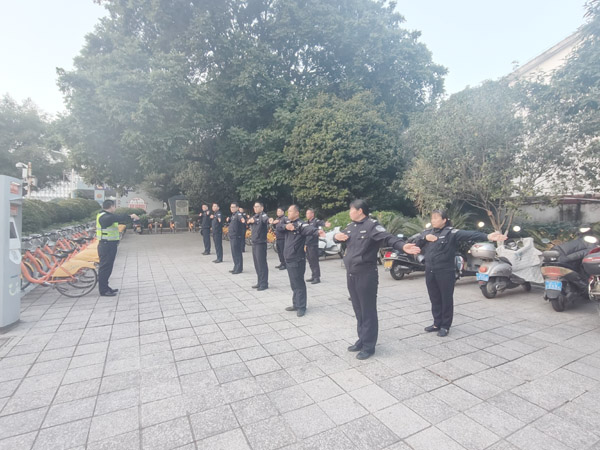 本报讯 为深入推进主题教育活动,进一步整肃队伍风气,提升队伍整体形象, 1月3日下午,龙桥派出所驻市政府警务队组织全体警务人员开展交通指挥手势训练。