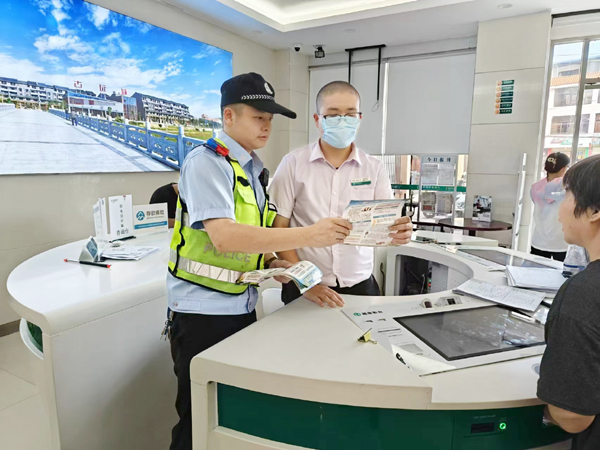 本报讯 为持续推进夏季治安打击整治行动,进一步增强银行防范风险能力,提高银行从业人员法制观念和法制意识,全力守护社会金融稳定,近日,赖店派出所走进辖区银行,为银行从业人员开展普法知识宣传。
