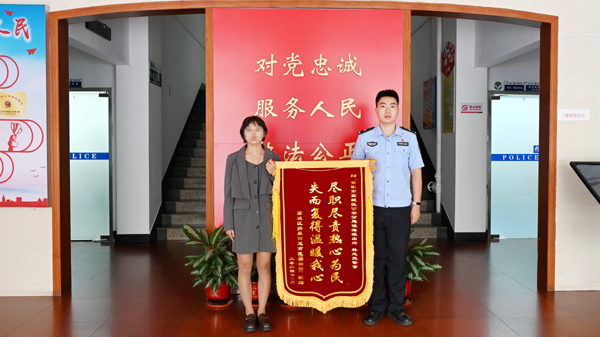 本报讯 10月14日上午,镇海派出所收到群众胡女士送来的一面“尽职尽责热心为民 失而复得温暖我心”致谢锦旗,对民警帮其追回被盗财物表示衷心感谢。