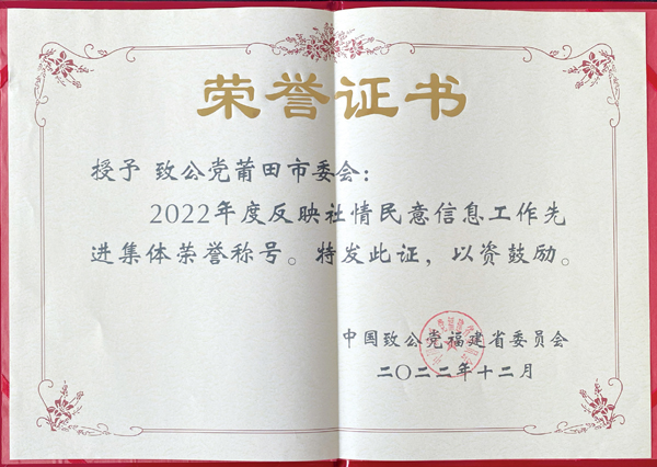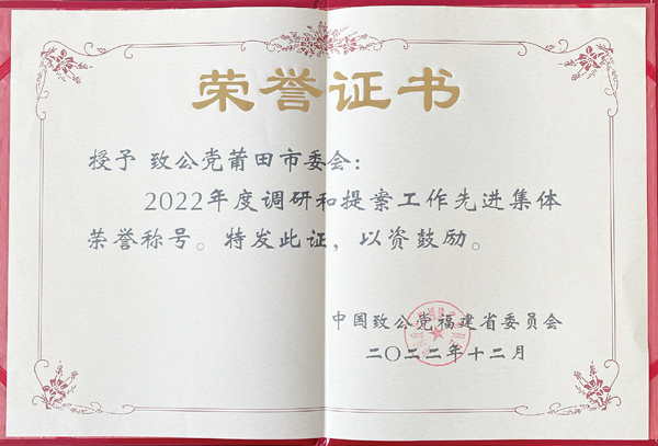 “这两份调研报告所提的建议科学合理,有很强的指导性、操作性。”市委、市政府主要领导高度重视致公党专项民主监督,作出批示,要求推进落实,切实把专项民主监督成果转化为莆田市绿色高质量发展的实际行动。《关于构建莆田跨境电商产业生态圈的调研报告》被致公党省委会评为“优秀成果”并在《中国发展》杂志发表,《推进莆田市制造业数字化转型研究》在2022年福建统一战线专项民主监督成果汇报会暨第十八届建言献策论坛上获奖。