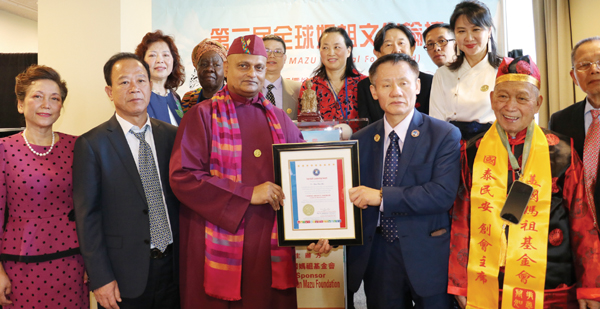 联合国宗教非政府组织委员会秘书长Guruji H.H. Dileepkumar Thankappan,美国哈莱姆区荣誉王太后Delois Blakely,联合国人民世界理事会委员会主席Sherrill Kazan,中国驻纽约总领馆领事邢玉临,湄洲妈祖祖庙董事会董事长林金赞,美国妈祖基金会创会主席黄升发、董事长朱荣斌、主席黄明萍等人出席并分别致辞。