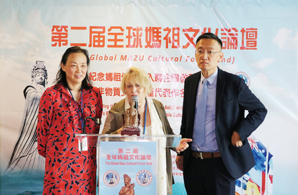 本次论坛由美国妈祖基金会、世界妈祖文化交流研究总会联合主办,由湄洲妈祖祖庙董事会担任指导单位。活动期间还进行了餐叙、学术研讨、赠送纪念品、颁发证书等环节,来自不同国家和地区的嘉宾进行了深入的交流与探讨,分享了各地妈祖敬仰者在保护和传承妈祖文化方面所做出的努力和取得的成就,同时也展望了妈祖文化在未来全球文化交流中的广阔前景。(时报记者 翁志鹏 通讯员 张丽明)
