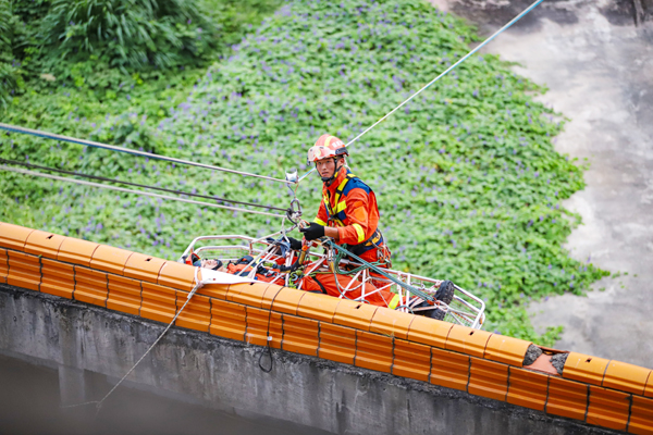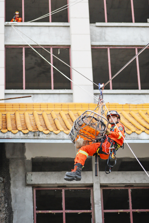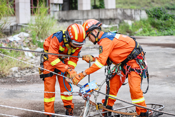 此次培训设置了理论授课、情景模拟、现场实操和培训考核等环节。培训团队就山岳救援及绳索救生技术理论知识进行全方面授课,重点围绕绳索、绳结、锚点知识,绳索救援技术的标准、原理及优缺点等内容进行剖析讲解,从基础的绳结制作、锚点制作、个人装备穿戴到操作性较高的绳索上升下降、高角度担架救援等科目渐进式教学。同时,还依托队站山岳救援模拟设施和辖区资源,最大化构建实战模拟场景,同步开展塔吊救援、楼层救援、竖井救援、桥梁救援等实景环境下实战救援操作,帮助参训学员对山岳及绳索救援技术逐步领悟、稳定提升。