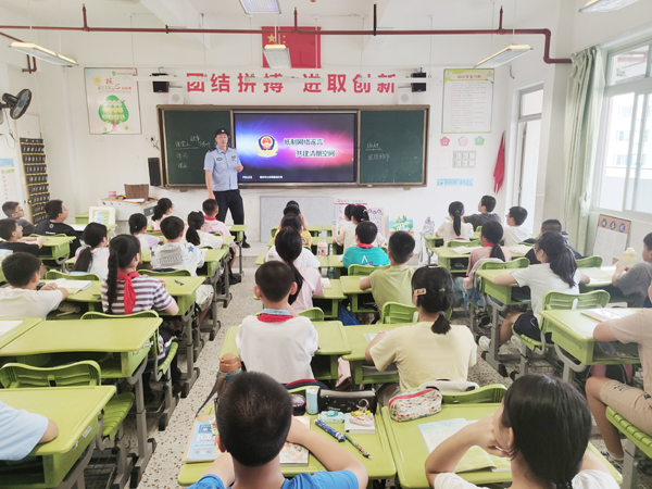 本报讯 近日,镇海派出所民警到教师进修学院附属小学开展“开学第一课”宣传教育活动。