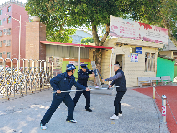 在演练中,民警对学校安保人员及老师讲解了可能遭遇的各类应急突发事件采取正确的应对策略,从如何快速报警、组织疏散,到自我保护的使用技巧等进行细致讲解;现场模拟突发事件,民警以从口头警告、运用专业战术控制、到最后制服的整个过程进行了演示演练;组织校园安保人员对照所学内容,对可能发生的突发事件进行实地操练。对演练中器械使用不规范、错误使用方法进行手把手的纠正,使全体人员进一步加深印象达到熟练掌握。