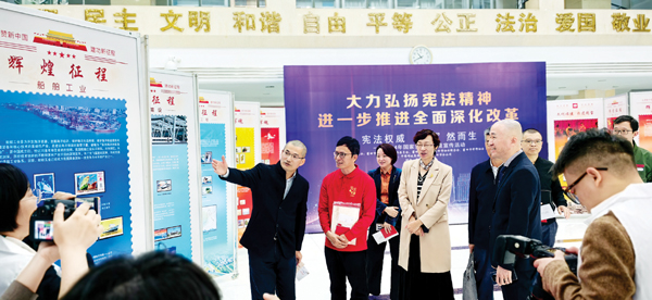 本报讯 弘扬宪法精神,建设法治莆田。12月4日,市政府1号楼大厅内,在莆田市集邮讲师团团长邱盛的导览下,与会嘉宾和观众一边打卡“礼赞新中国、建功新征程”主题邮展,一边拍摄短视频分享到朋友圈,助力2024年国家宪法日主题宣传活动。本次活动由莆田市关心下一代工作委员会、莆田市司法局、莆田市妇女联合会、莆田市律师协会等联合主办,莆田市集邮协会承办。