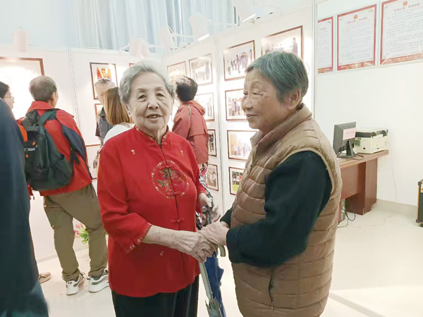 里面有个穿红衣服的阿姨叫林娟娟,满头银发,气质优雅。她说她们全家共有十人回来认祖,目前还没联系上亲属,有点着急。龚玉瑞校长和杨秀兰老师一直在她身边询问线索,帮她理清与家乡亲人的辈分关系。