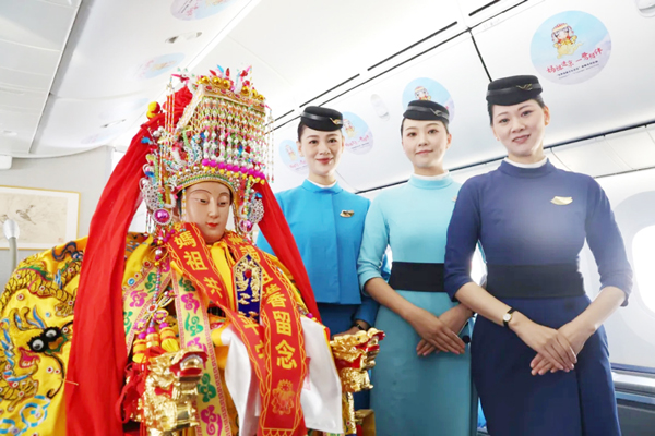厦门航空与妈祖文化渊源颇深,本次京城妈祖文化馆护驾队伍恭请分灵妈祖正是搭乘厦门航空的MF8107航班前往北京,飞行全程由厦航“保驾护航”。一直以来,厦航都是弘扬推广妈祖文化的积极实践者,这次妈祖搭乘厦航飞机前往北京,专门设立了主题航班,不仅飞机行李仓贴有“妈祖进京,一鹭相伴”的贴纸,还有妈祖专属机票。