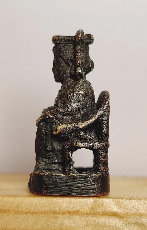 2024年12月10日上午,我来到南山堂,好友翁先生介绍他于近日有幸从日本拍卖会拍得一尊迷你铜雕妈祖坐像,高度仅2.5厘米,比世界第一尊仅3.23厘米高的迷你木质妈祖像还小,令人叹为观止!