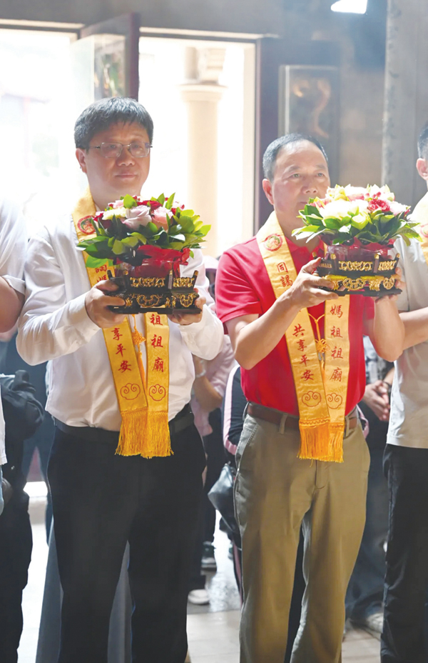 日前,台湾农业乡村观光发展协会、台湾彰化县鹿港天镇宫等妈祖文化团体组织进香团赴湄洲妈祖祖庙谒祖进香。