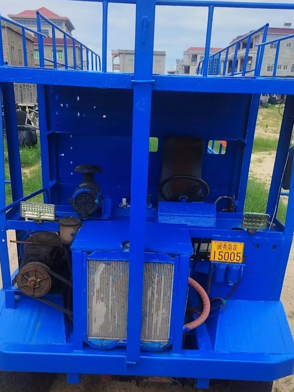 为应对岛内高湿度、高盐分环境对车辆零部件易腐蚀以及海域沙滩地质松软车辆易陷沉等问题,部分渔业养殖人员针对在码头及沙滩上使用的生产车辆进行“特殊”改装,提升其抗腐蚀能力、降低陷沉几率、增大承载量,最终形成现在的轮式生产专用机械车辆(俗称“土炮车”)。