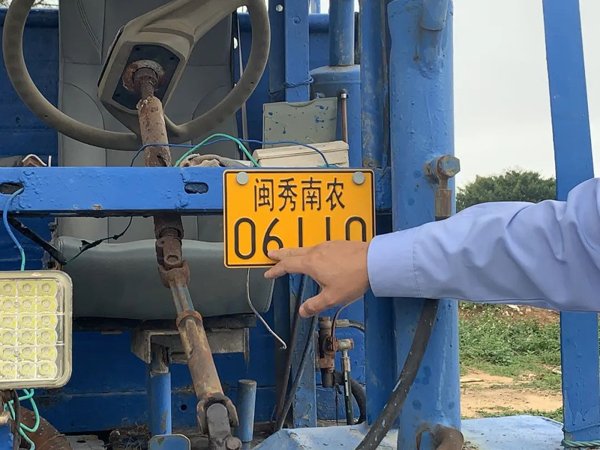 ▲岛内“土炮车”专用号牌——“闽秀南农”
