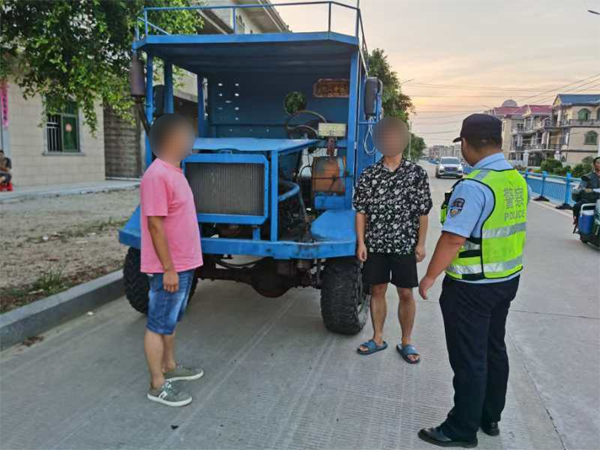 (三)疏堵结合。以警力压路面、宣传压路面的工作机制对“土炮车”违法上路行驶等各类交通违法行为进行严厉打击,对查处的违法案例进行曝光。此外,同步开展交通安全普法宣传,通过现场讲解方式,引导驾驶人或车主主动签订安全驾驶承诺书,强化其交通安全意识与责任意识。