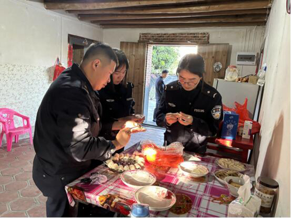 为了拉近与这户家庭的距离,民警们和群众一起动手包饺子,从和面、擀皮到调馅、包制,每一个环节都充满了欢声笑语。在包饺子的过程中,民警们不仅传授了包饺子的技巧,还与小女孩亲切交流,鼓励她勇敢面对病魔,积极接受治疗。同时,民警们还详细了解了小女孩的病情和家庭状况,表示将持续关注并尽力提供必要的帮助。他们为小女孩送去了书籍、玩具等礼物,希望她能够保持乐观的心态,早日康复。