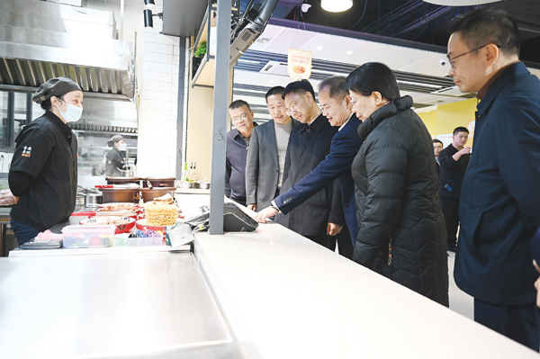 市长戴龙成到湄职院调研师生食堂情况。