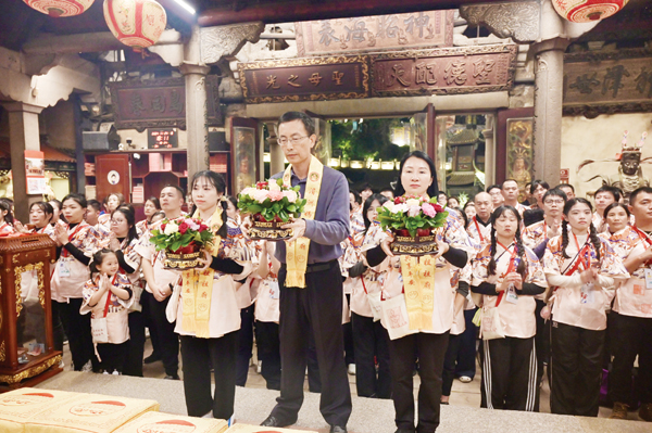 孙子璇说:“‘瓣香牵两岸,徒步循初心’泉台青年妈祖文化周活动至今连续举办了三届,我们没有用台湾传统的扛轿,而是采用背轿形式,这也是一种创新,当我们背上妈祖前行时,更多的是背上一份责任,背负着对未来的美好向往。这次行程五天四夜,徒步超200公里,我们背负妈祖神像从雨天走到晴天,一路风雨无阻。大家从晋江东石天后宫出发,走过西街、泉州天后宫等世遗点,过程中增加了簪花、梳妈祖头等非遗项目,还有妈祖牵姻缘等环节,这些活动增强了两岸青年的凝聚力、向心力,是两岸融合的最好体现。”