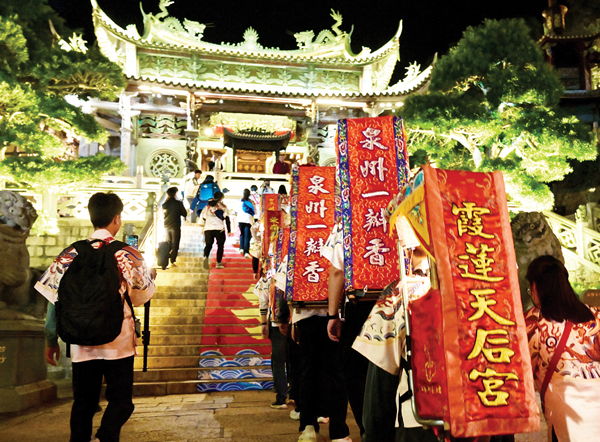 11月20日,“瓣香牵两岸,徒步循初心”第三届泉台青年妈祖文化周活动从晋江东石天后宫出发,120多位泉台青年背负妈祖神像、身着汉服,途经泉郡天后宫、蟳埔顺济宫等35座妈祖宫庙,横跨泉州、莆田两市的11个区,历时五天四夜,徒步超200公里,亲身感受泉州到湄洲岛沿途的风土人情,体会一衣带水的两岸亲缘。