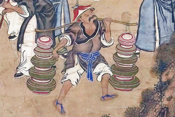 清代水陆画《五帝回銮万民庆》中的“肩挑十盘担”
