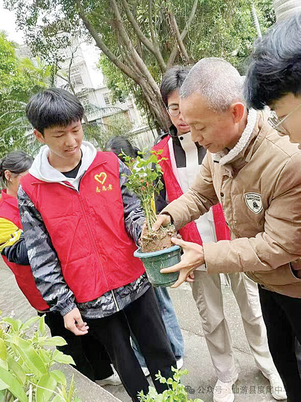 本报讯 春日的校园,泥土芬芳,生机盎然。近日,仙游县度尾中学,一场特别的劳动教育正在展开——该校副校长高国雄、陈凡带领学生会志愿者团队共同种下80株茉莉花苗。这场以“劳动育心,绿润成长”为主题的活动,不仅让校园披上新绿,更将生态文明理念与思政教育深度融合,成为一堂生动的“生命课”。