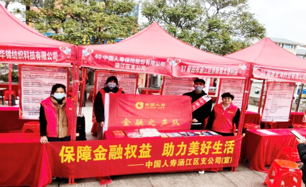 为深入贯彻落实金融消费者权益保护工作要求,践行“保障金融权益 助力美好生活”的服务理念,近期中国人寿涵江区支公司、仙游县支公司开展金融消费者权益保护教育宣传活动,为乡村振兴注入金融力量。